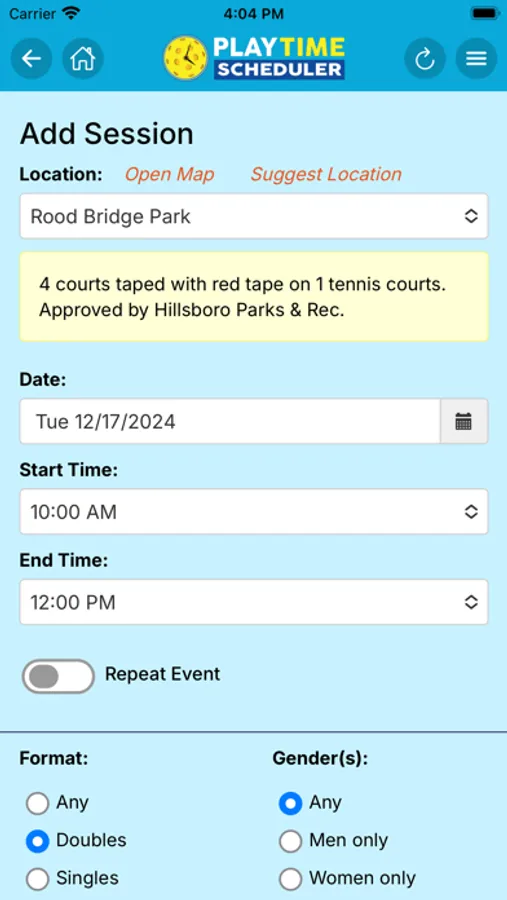 • Easy Sign-Up: Join sessions that match your format and skill level with just one tap—no group codes required.