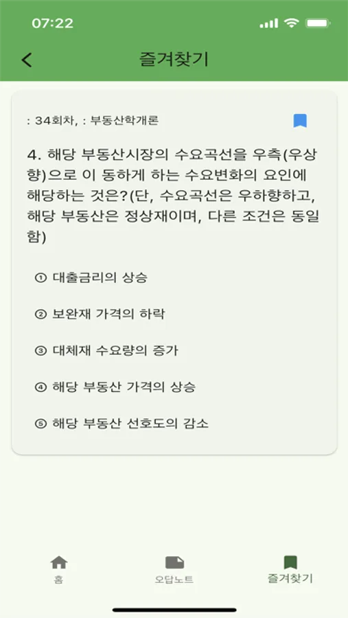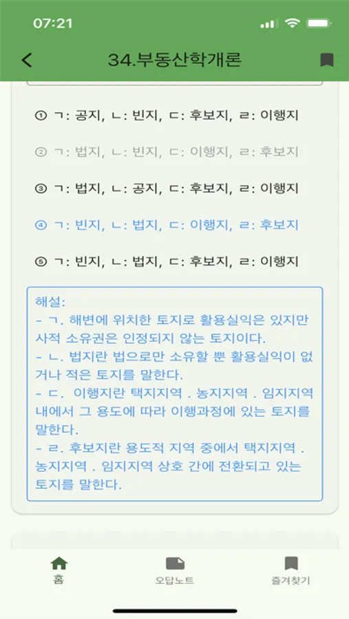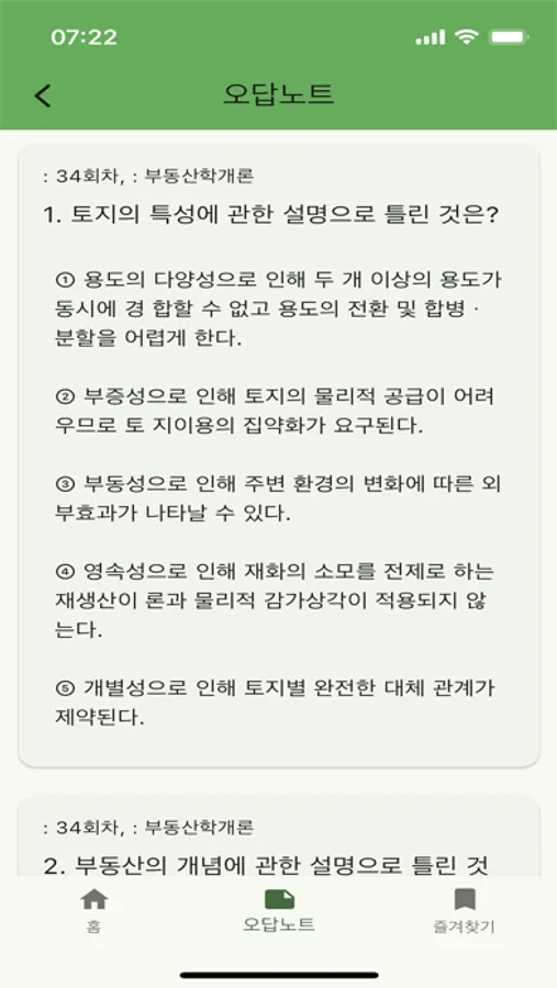 공인중개사 기출 - 문제풀이, 오답노트, 즐겨찾기