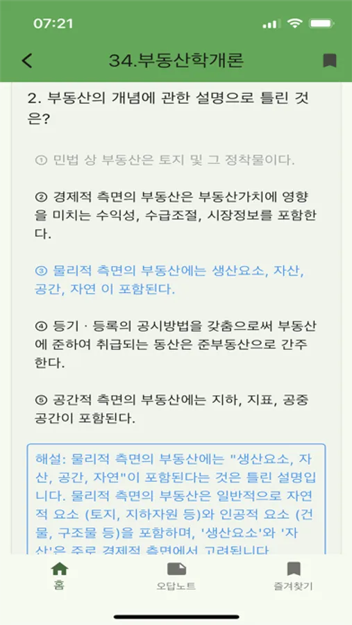 공인중개사 기출문제집 - 정답, 문제 해설, 오답노트, 즐겨찾기