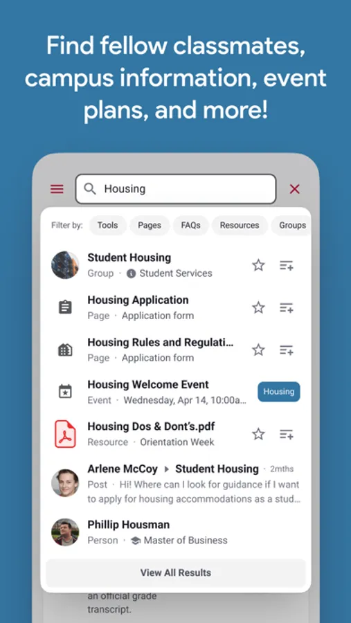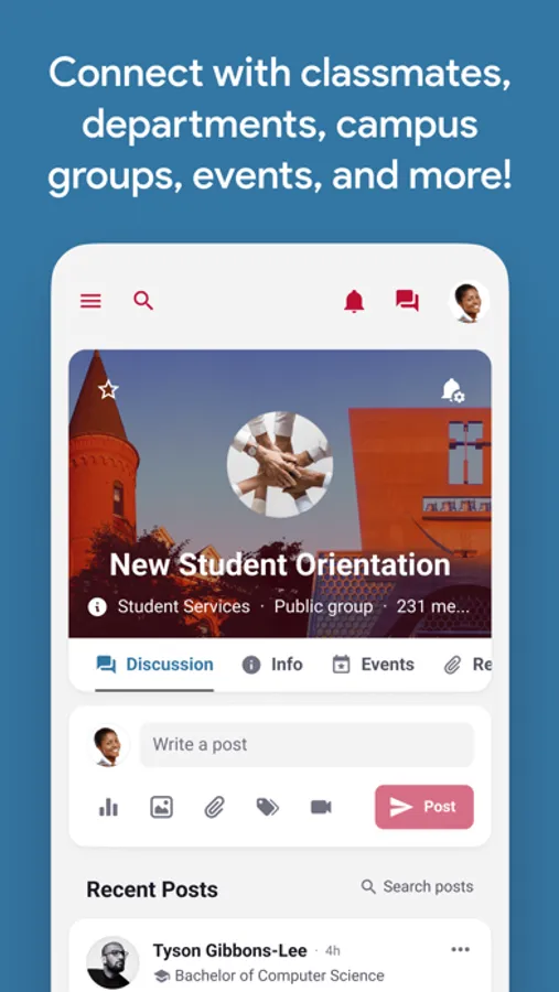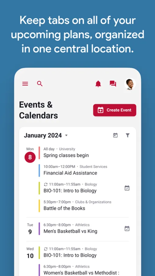 - Find and join campus events