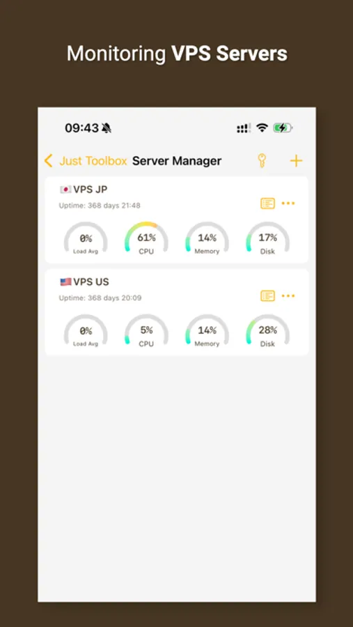 * Monitor server status, check CPU/Memory usage