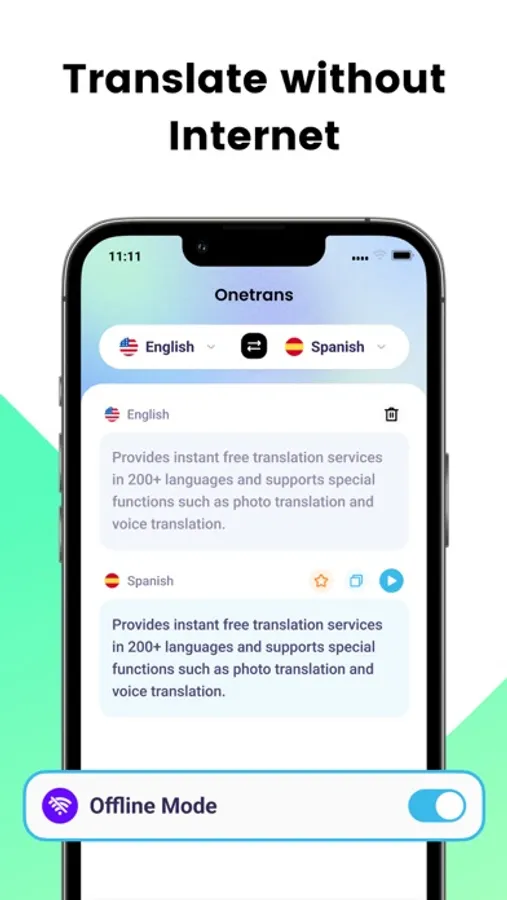 Offline Mode:TransKit includes an offline mode feature that allows you to use the app even without an internet connection. By downloading language packs in advance, you can access translations seamlessly while traveling or in areas with limited or no network coverage. This ensures you have reliable translation capabilities at your fingertips wherever you go, without depending on internet connectivity.