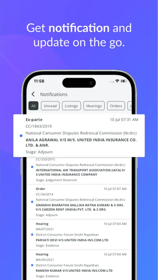 Receive notifications on hearing dates, orders, and judgments based on publicly available court and registry records.
