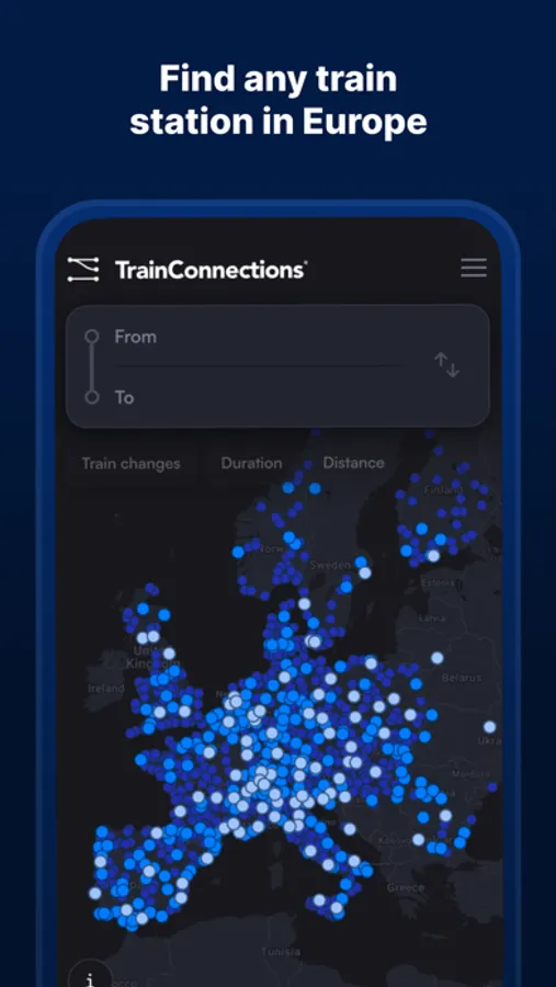 With TrainConnections, you can find all reachable train destinations in seconds, whether direct, with one stop, or multiple stops, all displayed on a clear and easy-to-use train map. Our platform aims to make international train travel planning straightforward for everyone.