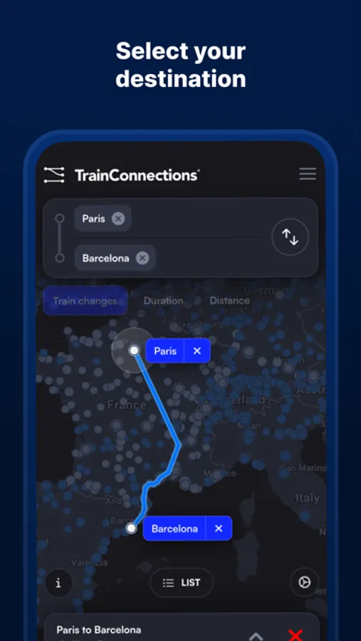 Our interactive map, combined with a list view of destinations, provides a seamless experience for exploring and planning your train journeys.