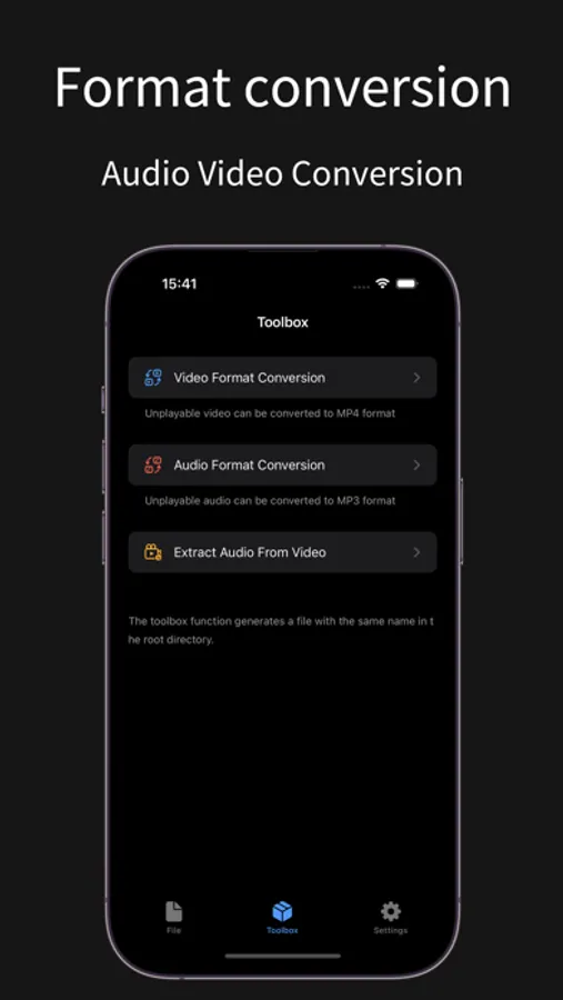 Powerful video format conversion tool that allows you to convert videos that cannot be played into playable formats, enabling video playback directly within the app.