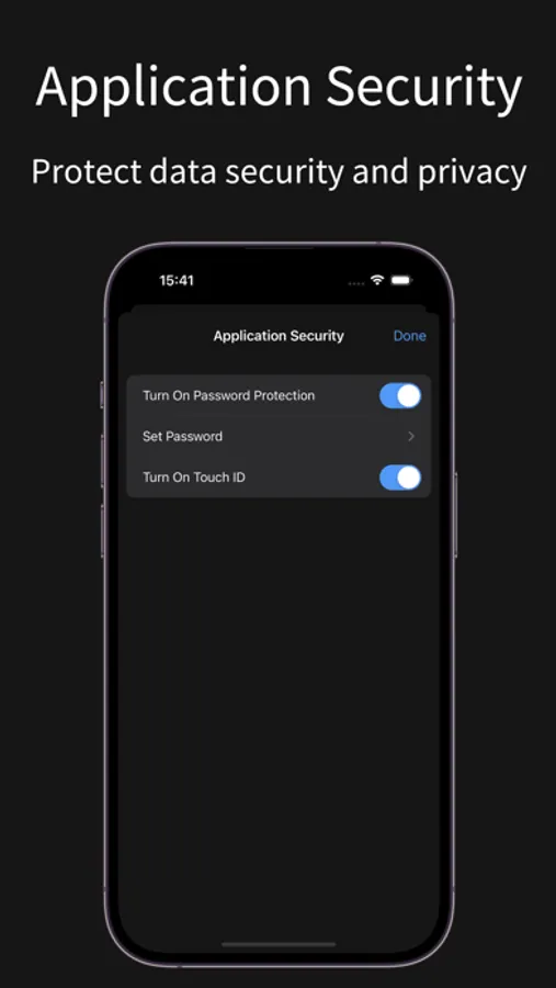 Provides advanced privacy protection features. You can set a password and enable Touch ID to ensure the security and privacy of the data within the app.