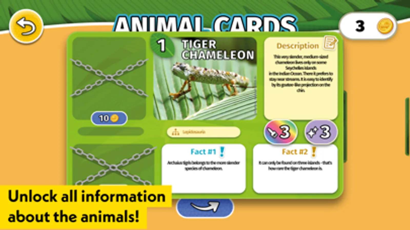 *You can play with chameleons in the basic app. Snakes and crocodiles are only available as an additional in-app purchase.