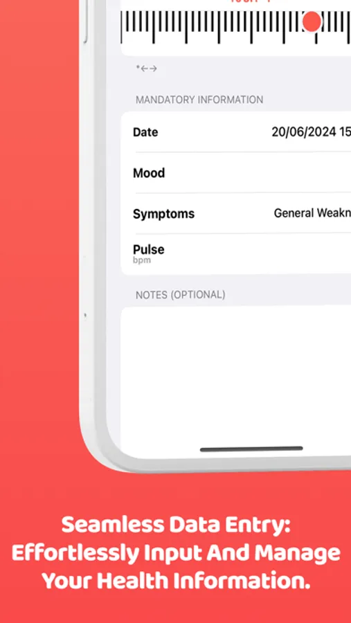 Log body temperature, pulse rate, heart rate, mood, and measurement location in seconds.