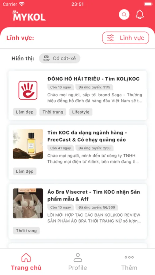 Được đánh giá cao với sự chỉnh chu trong việc tiếp cận song phương, MYKOL hứa hẹn đem đến giải pháp kết nối nhanh chóng nhất, hiện đại nhất, tối ưu nhất trong từng lĩnh vực chuyên môn mà chính Nhà tuyển dụng hay KOL/KOC/Influencers đang kiếm tìm.