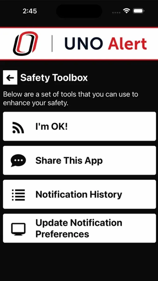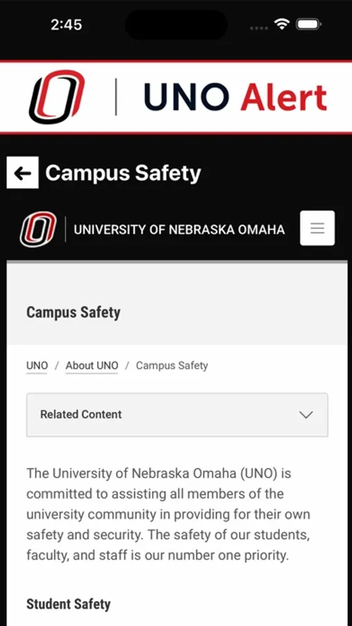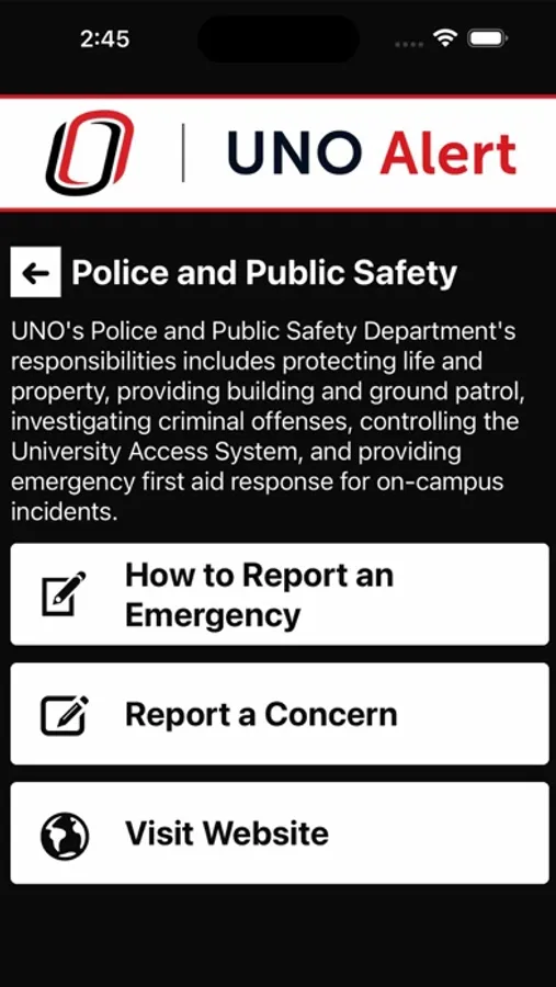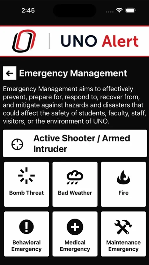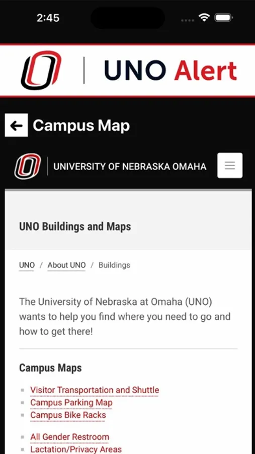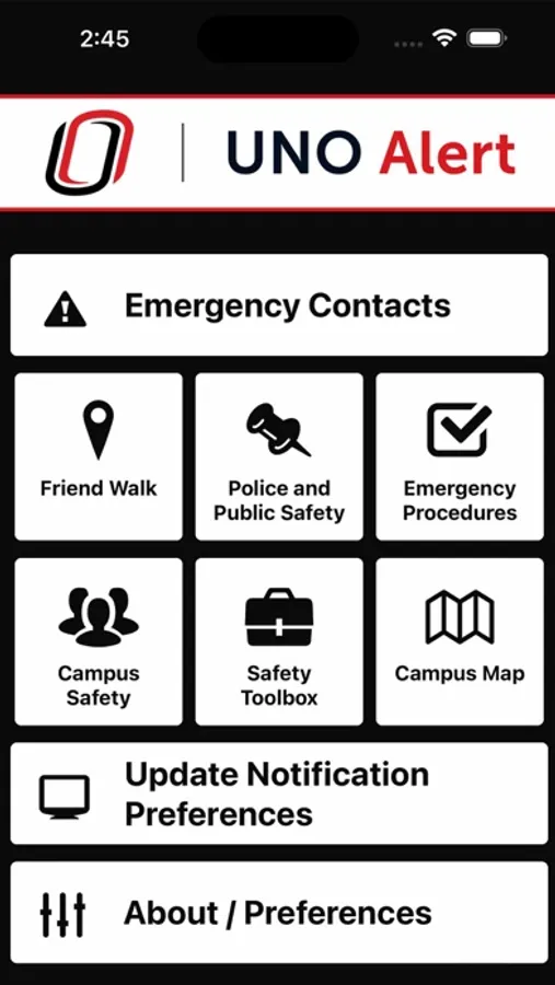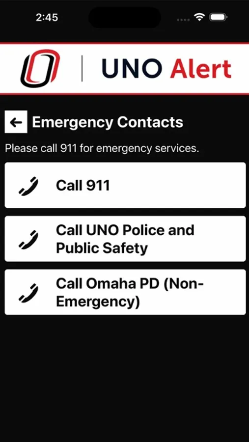 - Safety Notifications: Receive instant notifications and instructions from UNO safety when on-campus emergencies occur.