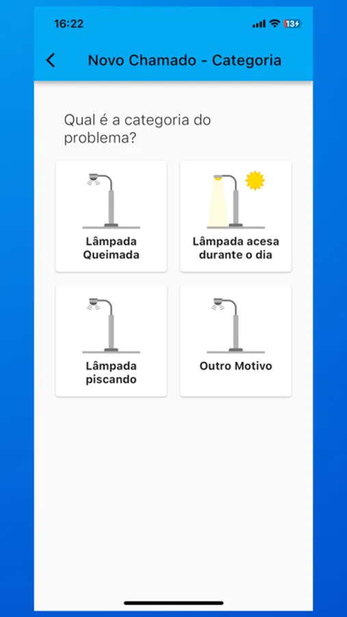 Reporte problemas pelo aplicativo, apontando a localização do problema, e descrevendo o que acontece. Para regiões onde empresas usam o Ilume+, o chamado será direcionado para a empresa correta, que será informada e buscará a solução.