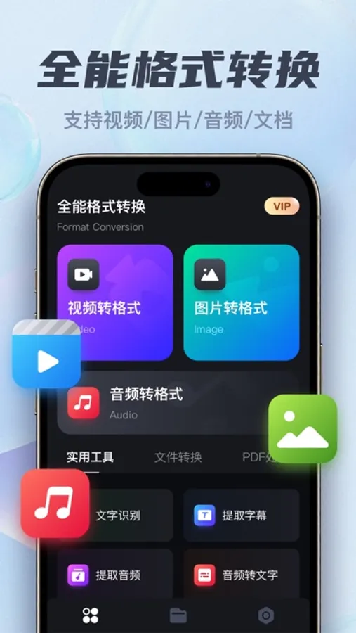 全能格式转换是一款全能的转换器和文件管理器,支持视频、图片、音频、文档、表格、幻灯片、PDF等文件的转换,专业高质量的格式转换工具