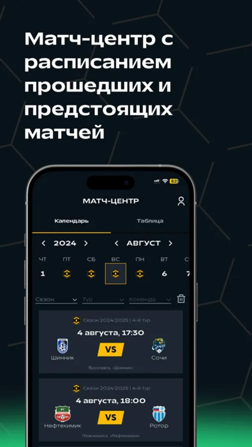 Теперь у вас под рукой подробная информация о выступлении команд: результаты матчей, количество голов, ассисты, замены, карточки и многие другие статистические данные. Будьте в курсе всех подробностей игры!