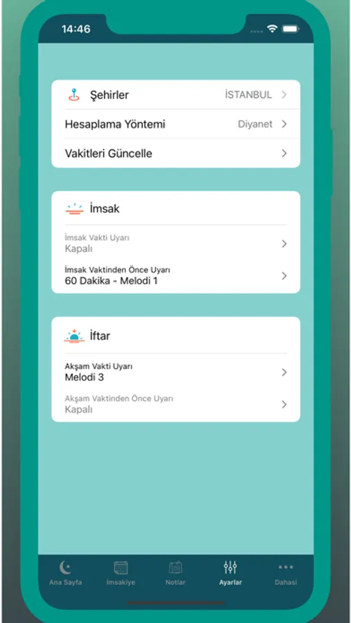 - Sahur ve iftar vakti uyarıları