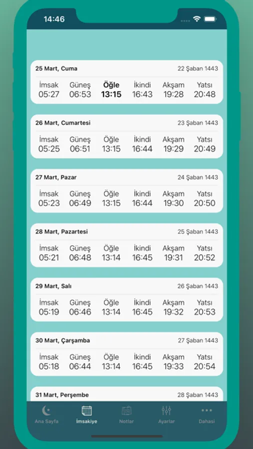 - Aylık imsakiye
