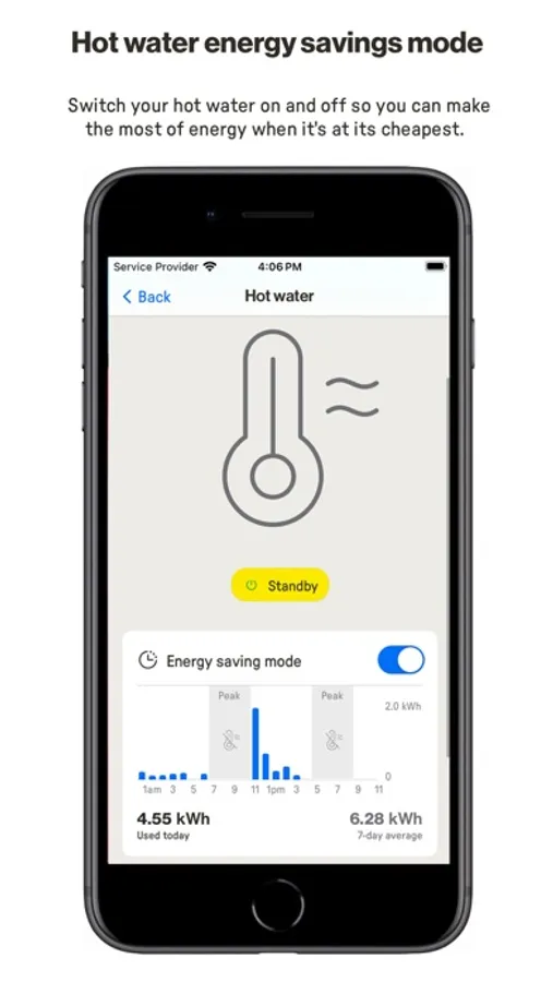 • Access to your hot water energy saving mode that allows you to save money on your power bill
