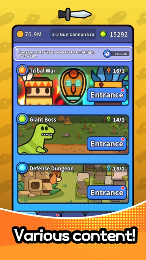 The adventure begins with a time machine: As if you were in a time machine, you are transported to different eras at the start of the game. Travel through time and conquer different eras by solving challenges and earning rewards in each era.