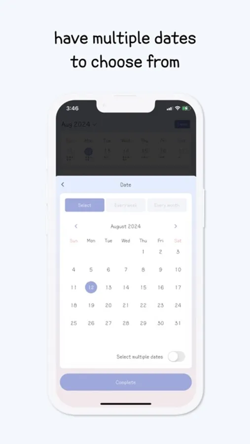 - Swipe left and right to move the date (yesterday or tomorrow)