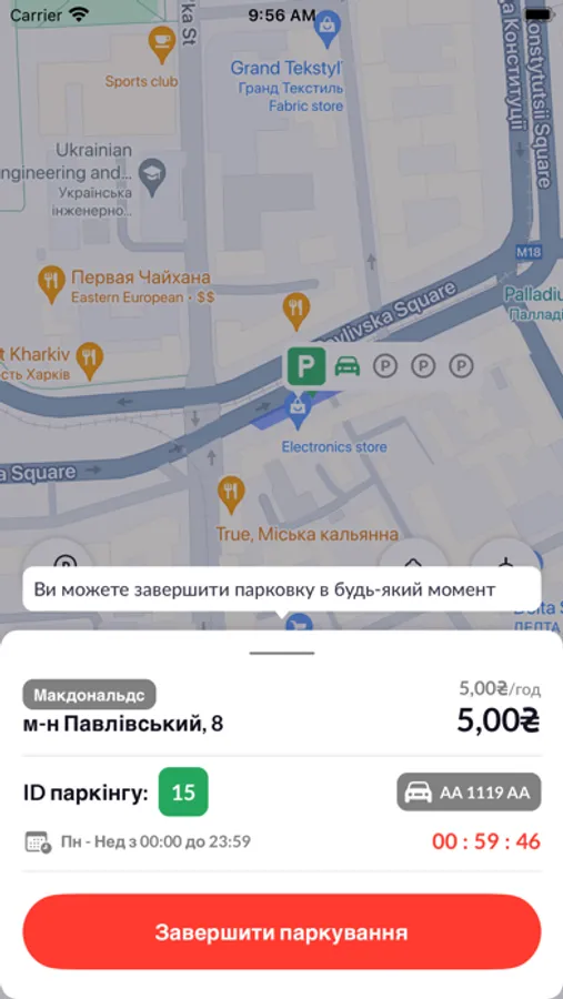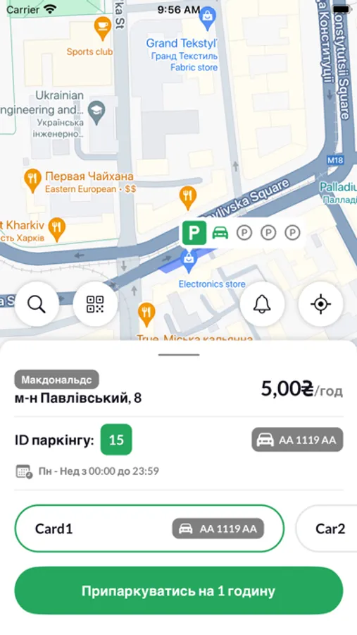 Паркувальний додаток дозволяє водієві сплатити вартість паркувальних послуг, а також швидко отримати інформацію про порушення та штрафи. Також доступна докладна інформація про тарифні зони та час роботи та доступність паркувальних майданчиків.