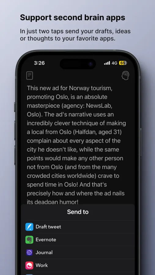 SupaSend is your go to "note-to-self" app to quickly capture & send your notes, ideas or thoughts to your second brain apps seamlessly.
