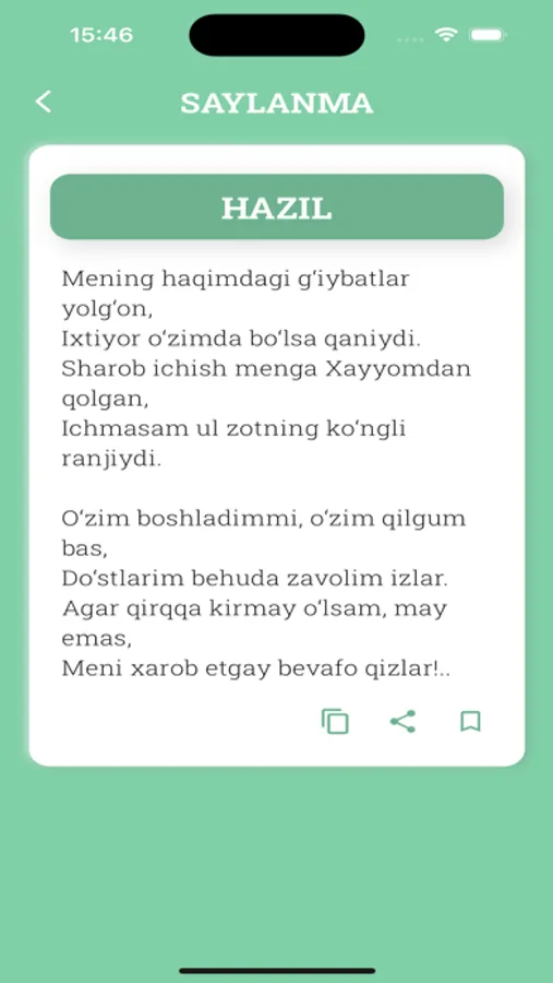 ◦ Sevimli she’rlarni saqlash imkoniyati