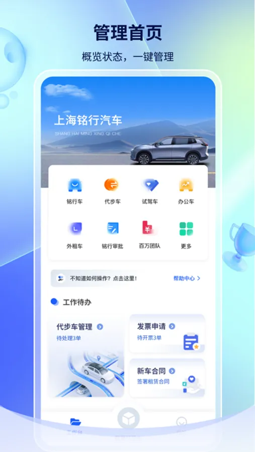 想用车系统主要为方便铭行进行车辆的综合管理,快速查阅及审批相关操作。实施展示车辆的相关数据信息,提供用车申请的在线审批功能。提升车辆应用的周转率,为铭行车辆移动办公,提供便捷操作。