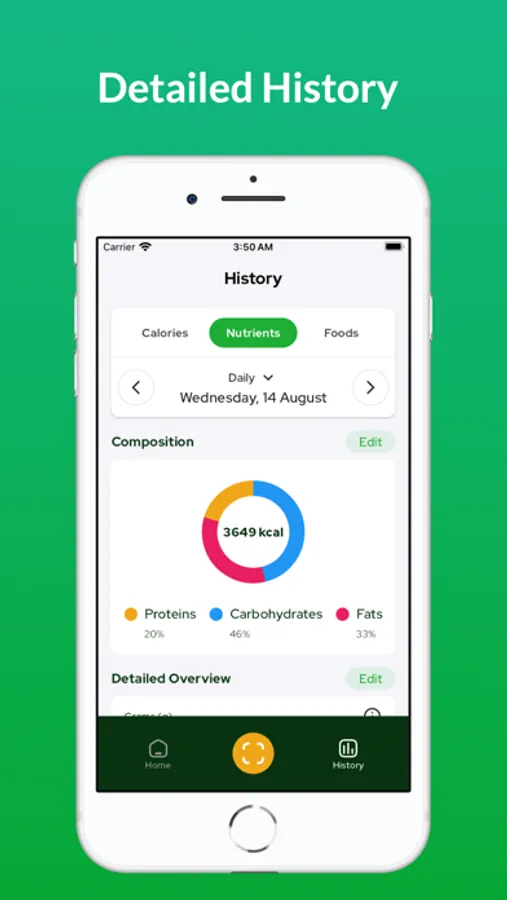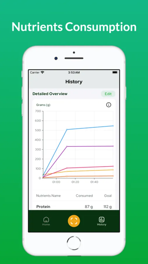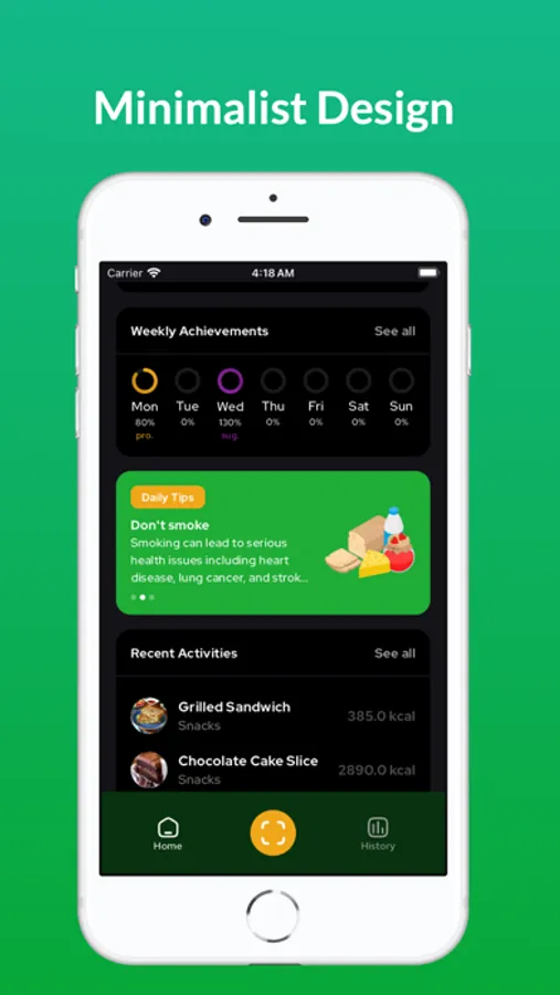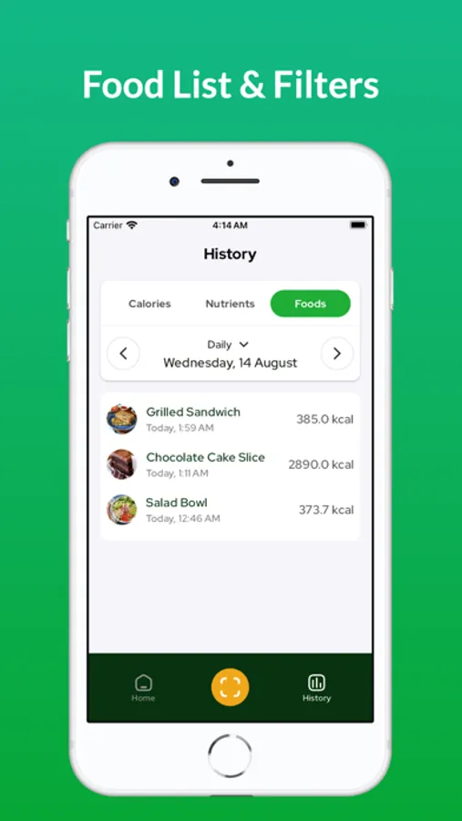 Meal History: Access a history of your meals and snacks at any time. Review your dietary habits, track progress over time, and make informed decisions about your future eating patterns.