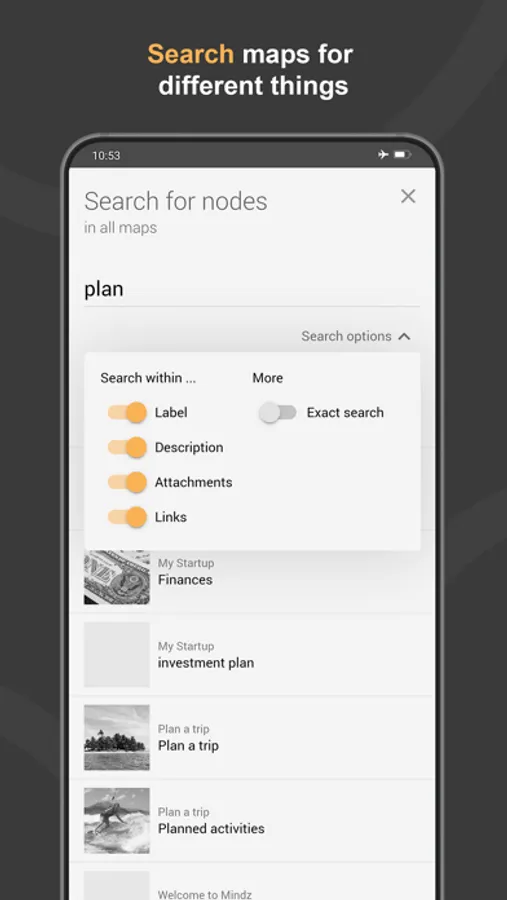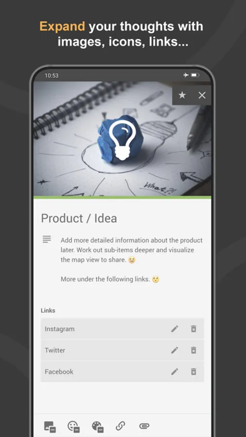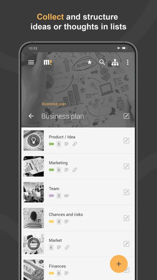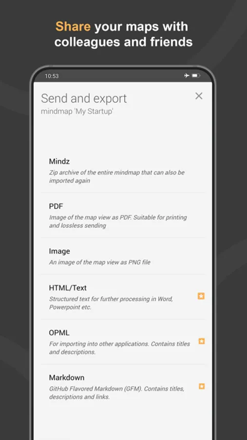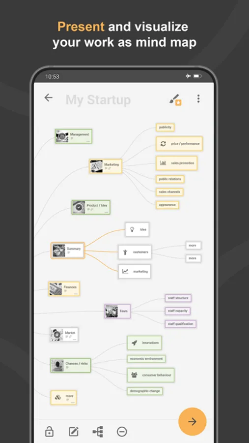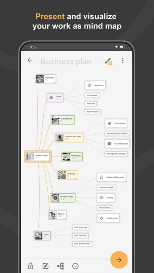 Structure your thoughts, gather ideas, or plan projects clearly in nested lists. You can then easily visualize, present, and share these as mind maps.