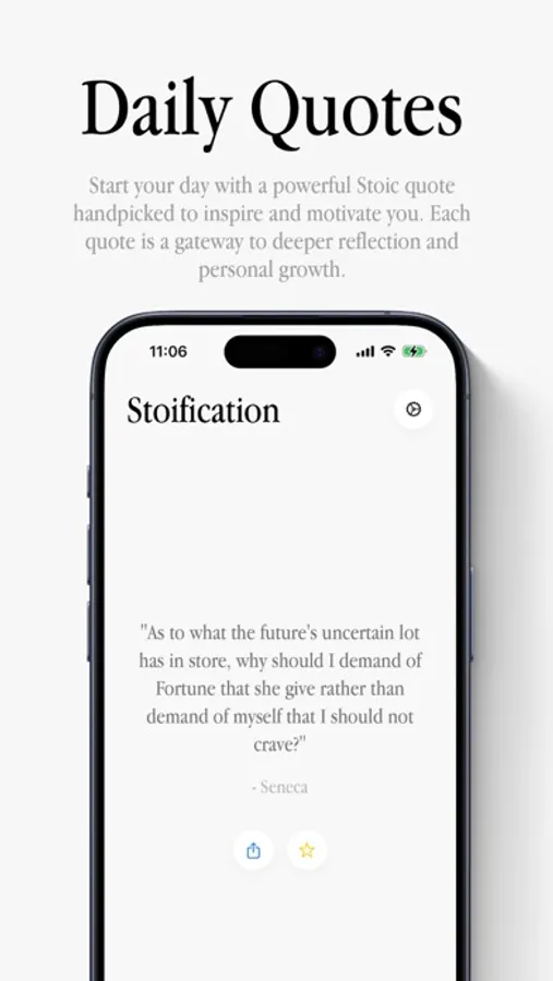 - Daily Notifications: Never miss your daily dose of Stoic wisdom. Schedule personalized notifications to receive your daily quote at the perfect time for you.