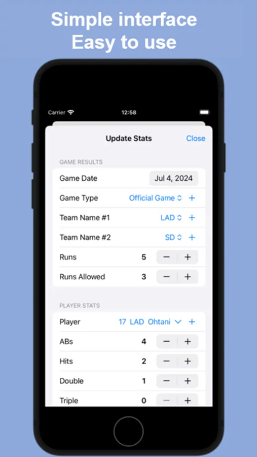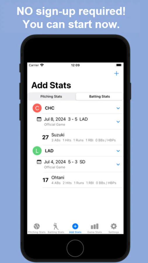 MyBaseballStats is an app for specifically baseball stats, score inputs. No need bother sign-up!