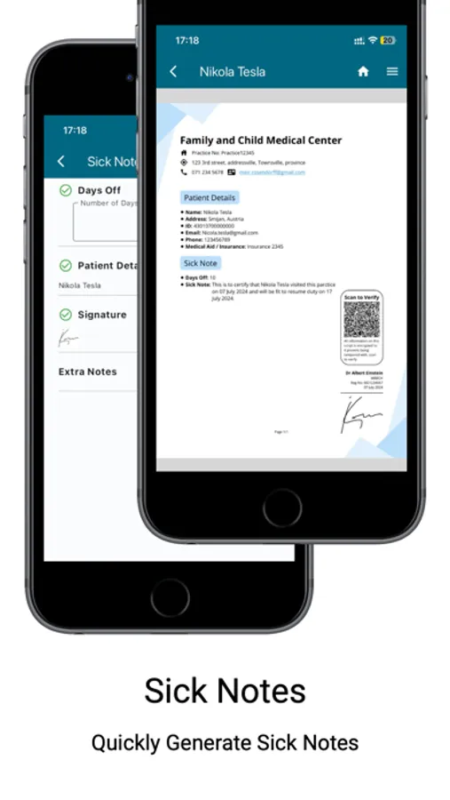 • Create and sign legal sick notes for your patients.
