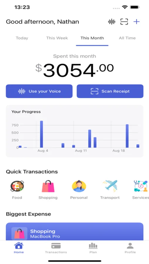 • Add expenses quickly and easily using voice commands. Simply speak your transaction details and Steady will create an entry for you.