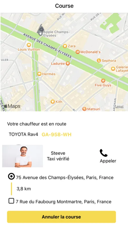 Localisation en Temps Réel : Suivez le trajet de votre chauffeur en temps réel sur la carte intégrée, avec des mises à jour en direct.