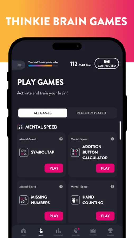 Start your free trial and experience the benefits of cognitive training to reduce your brain age! Unlock more games and more difficulty levels when used alongside your Thinkie Sensor!