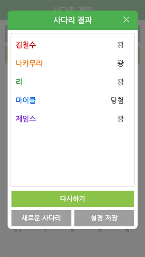 - 설정한 사다리를 저장해 이후에 다시 불러와 플레이할 수 있습니다.