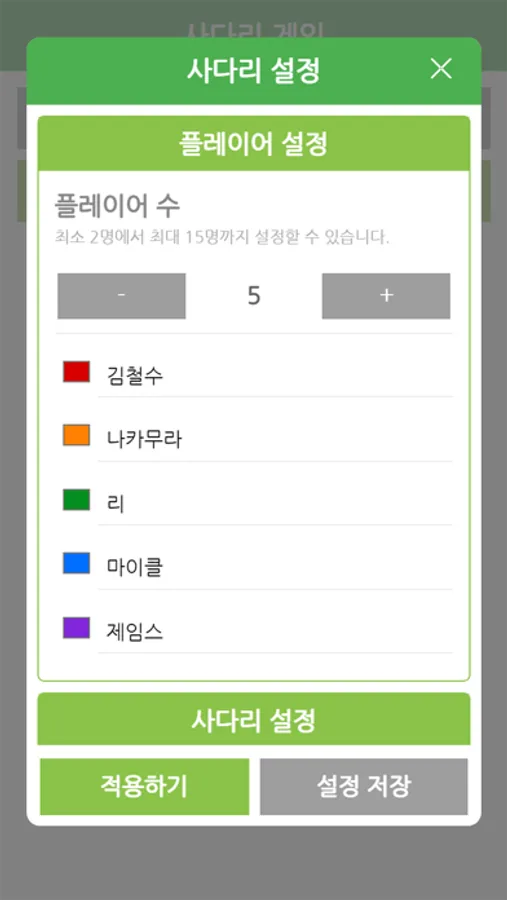 2. [사다리 설정]을 선택해 입맛에 맞게 사다리를 설정합니다.