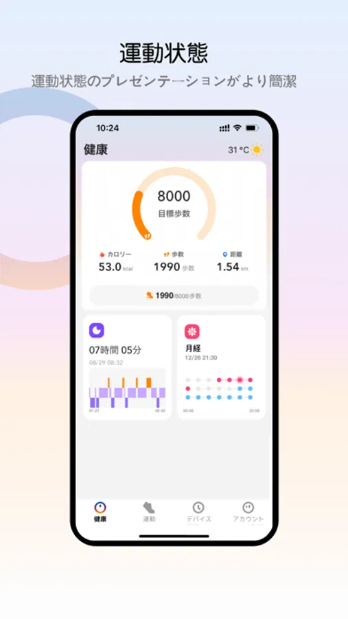 Appを開くと、各モーションの完全なデータを表示できます。毎日、毎週、毎月の運動状況は、一目瞭然です。