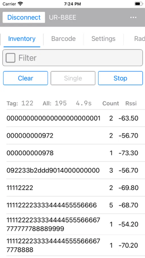 RFID Tools APP is a professional UHF RFID and Bluetooth device management application designed for inventory control, data collection, and device operation. It supports comprehensive UHF tag operations including inventory, read/write, lock, and kill functions, with additional barcode scanning capability for compatible Bluetooth devices such as the R6 series. The app features data collection and export functions, enabling efficient batch tag management.