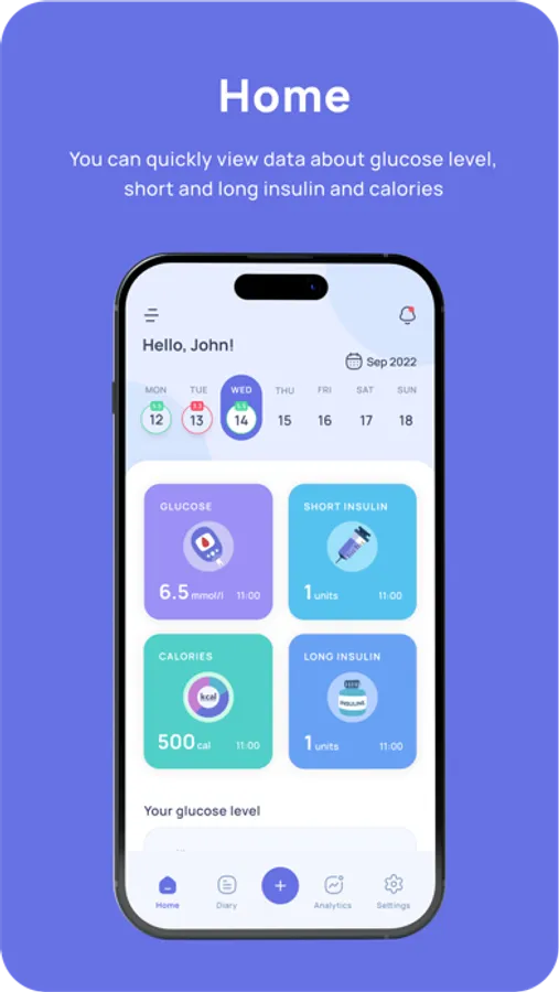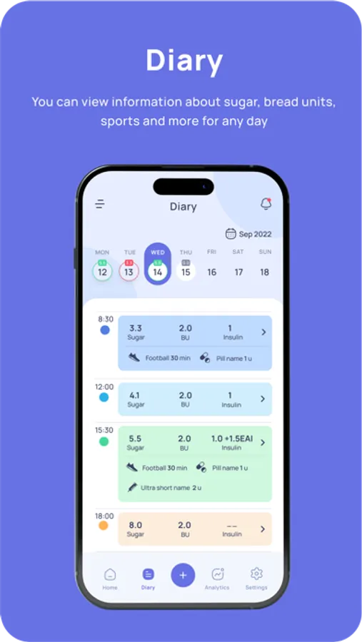 Track your blood glucose, insulin, and carb intake with ease.