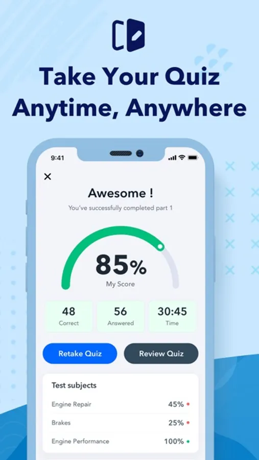 Helping you pass your ASE A Series A1-A9 certification exams is our primary goal. Study and prepare for the exam with a professional mobile app that will boost your confidence in passing the exam on the first try!