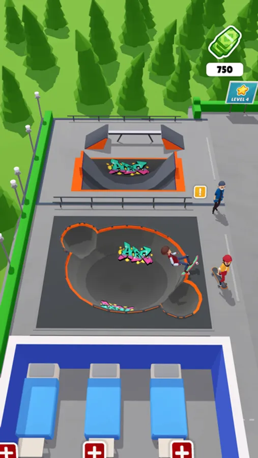 Start small by serving visitors with only one ramp. As you earn coins, expand your park by purchasing thrilling skate ramps that attract more skaters. Upgrade your ramps to increase revenue per customer.