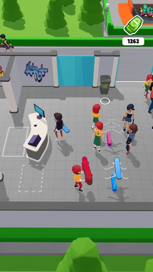 In this addictive idle arcade game, you take on the role of the park administrator of a bustling skate park. Your mission? To ensure every visitor has the ultimate skating experience while keeping the park clean and profitable!