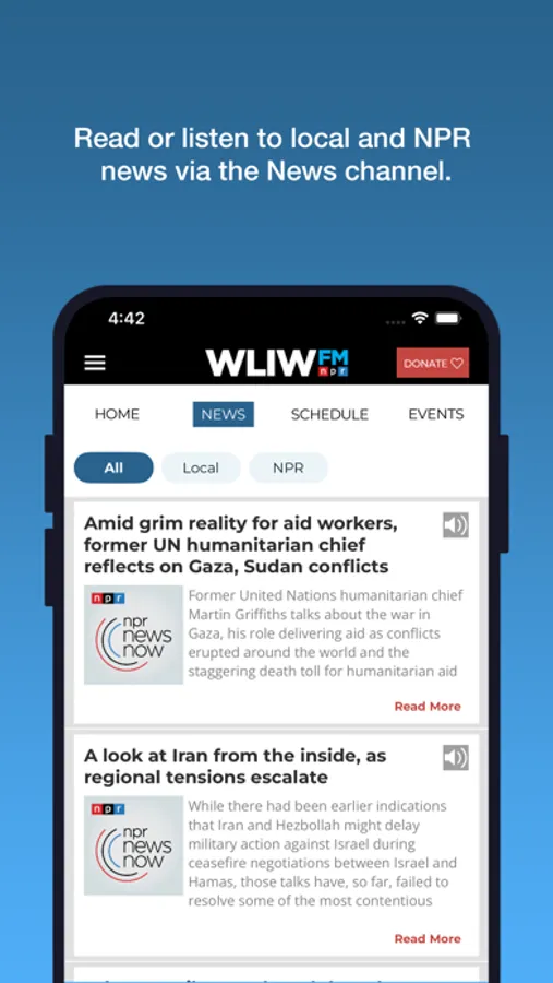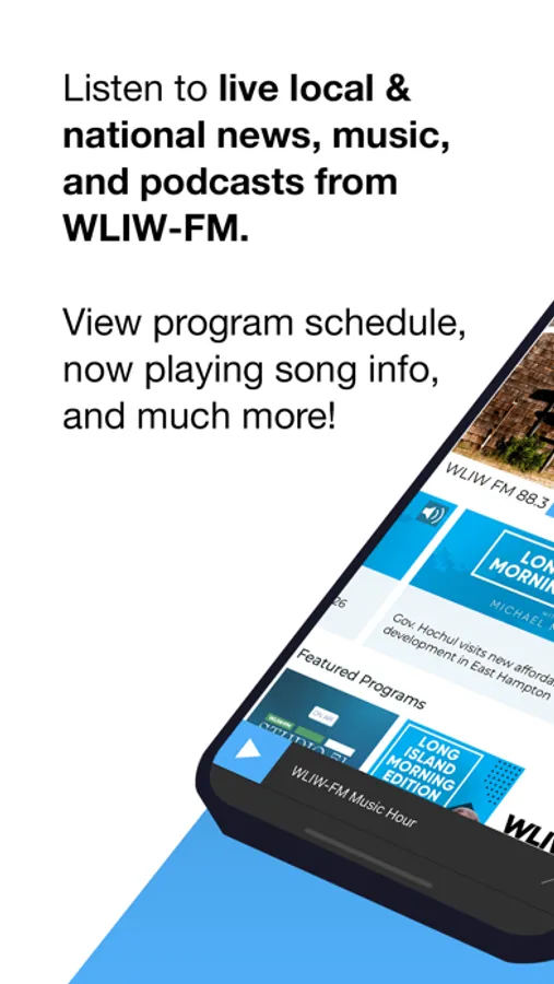 The WLIW-FM App allows you to listen to the WLIW-FM live stream, pause and rewind the live audio, view the program schedule, and wake up to WLIW-FM with the alarm clock!