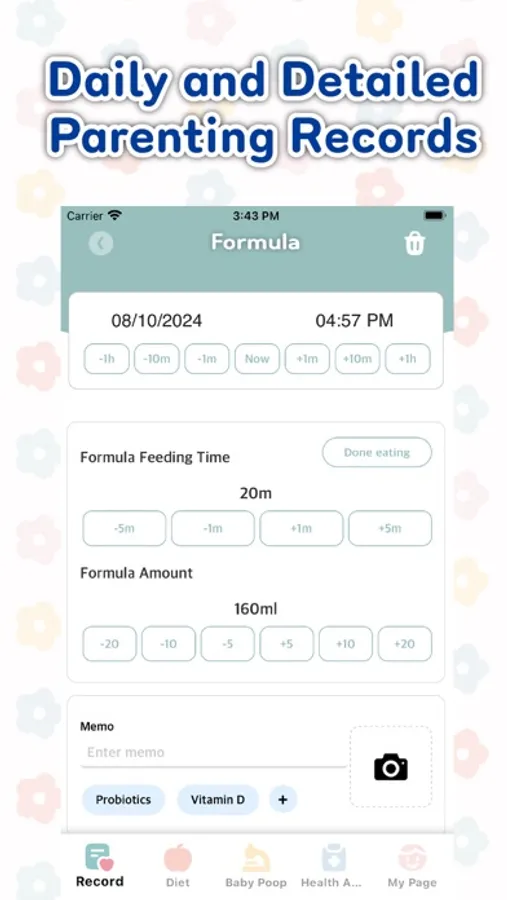 - Feeding Tracker: Record nursing and bottle feedings effortlessly. Start a timer with one tap for breastfeeding sessions or log bottle amounts. Bebesnap helps you track how much and how often your little one eats, giving you peace of mind that they’re getting the nutrition they need.