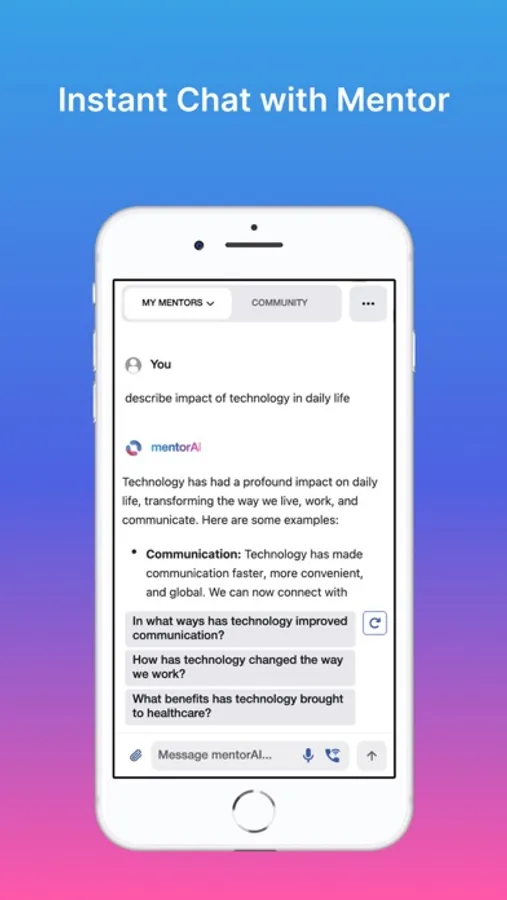 Download mentorAI and take the next step in your learning, career, and creative journey.