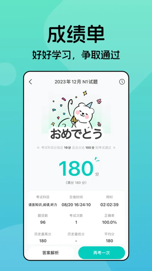 Hello! How is your Japanese learning going? It's time to test your Japanese proficiency level, Goukaku combines fresh, simple style and easy operation, you will surely like the learning tool, its main contents are: