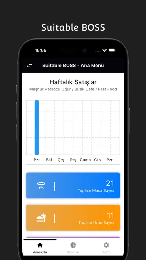 Suitable BOSS sayesinde Suitable POS kullandığınız işletmelerinizin kazançlarını takip etmek, ürün bazında raporlar almak, çalışan raporu almak ve diğer istediğiniz tüm raporları almak saniyelerinizi alacak.