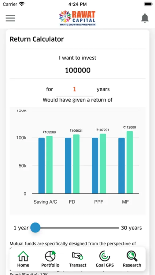 Rawat Capital is an online Mutual Fund investment platform that provides you with digital financial advice and scientific portfolio allocation. Our application offers you Online Trading Share, Equity, commodity, Mutual-Fund, SIP.