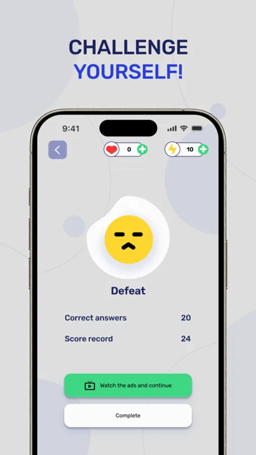 The player has a limited number of lives, each wrong answer reduces the number of lives. However, correct answers replenish energy, allowing the player to replenish their lives, which encourages accuracy and attentiveness. Also, the number of lives is automatically replenished each new day, so if you don't have any attempts left, come back the next day